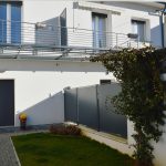 Realizzazione di due villette a schiera di quattro locali, dalle splendide finiture. Spazi ampi e luminosi con grandi vetrate a correre. Giardini e box.